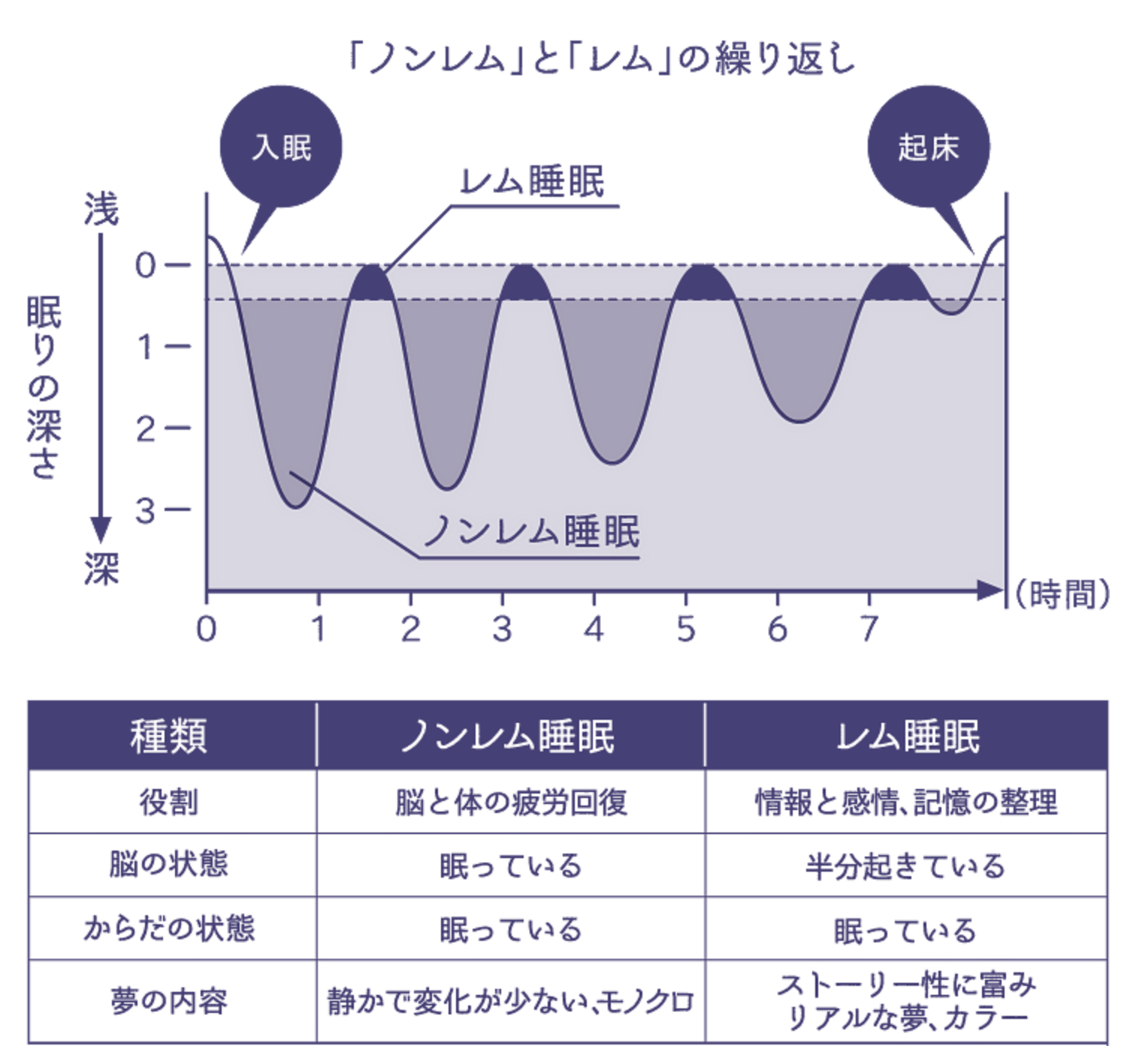 - ノンレム睡眠:脳の休息、体の回復、成長ホルモンの分泌、免疫機能の活性化