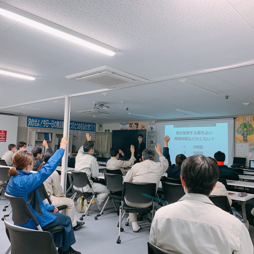 従業員の方々には今日からの睡眠の習慣の行動計画までを立てて頂きました。